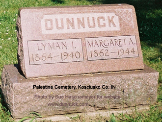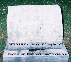 Samuel N. 1860-1935 son of Isaac W. DUNNUCK (right - Samuel's wife Orta) Oakwood Cemetery, Warsaw, Kosciusko Co., IN